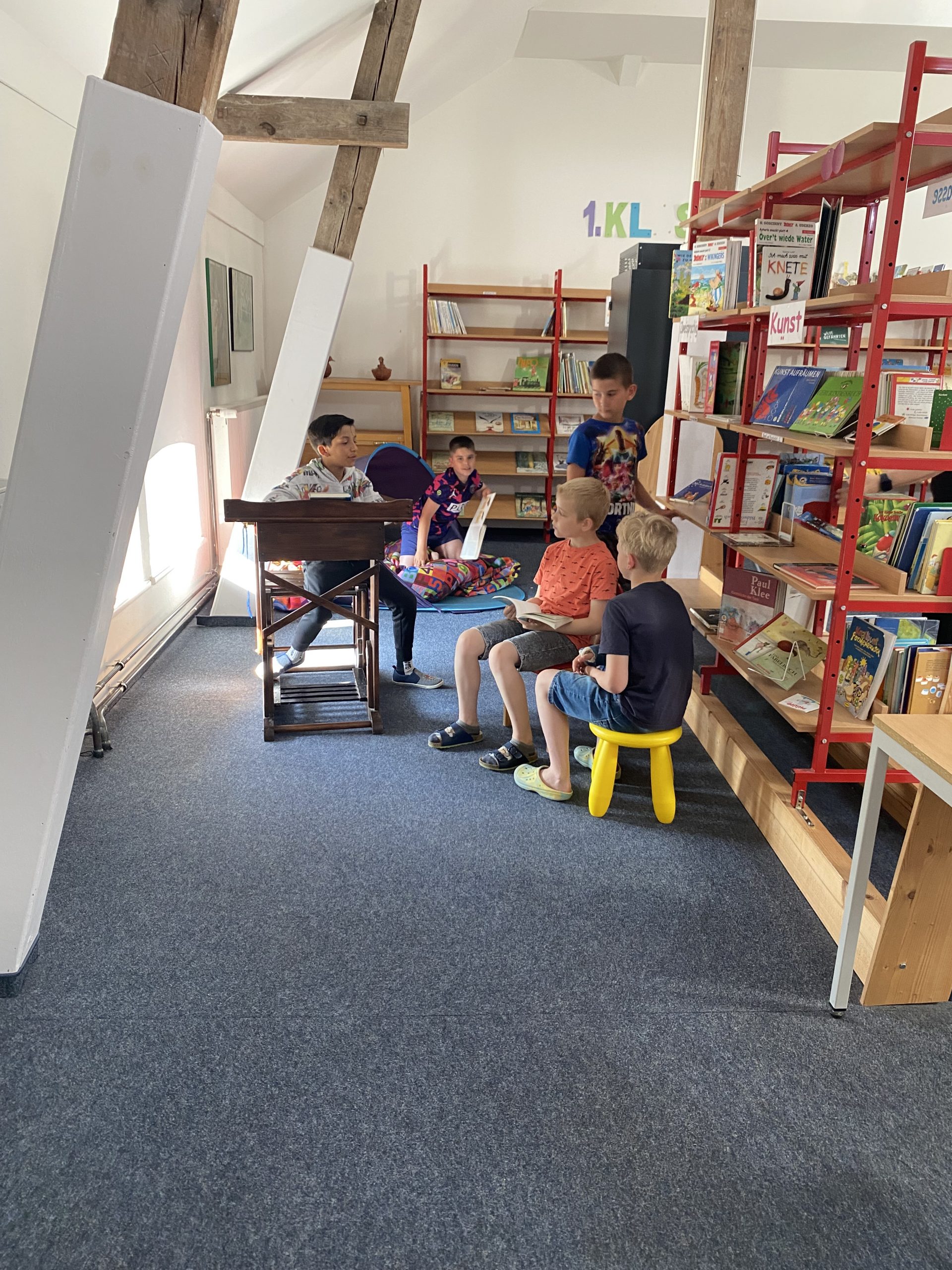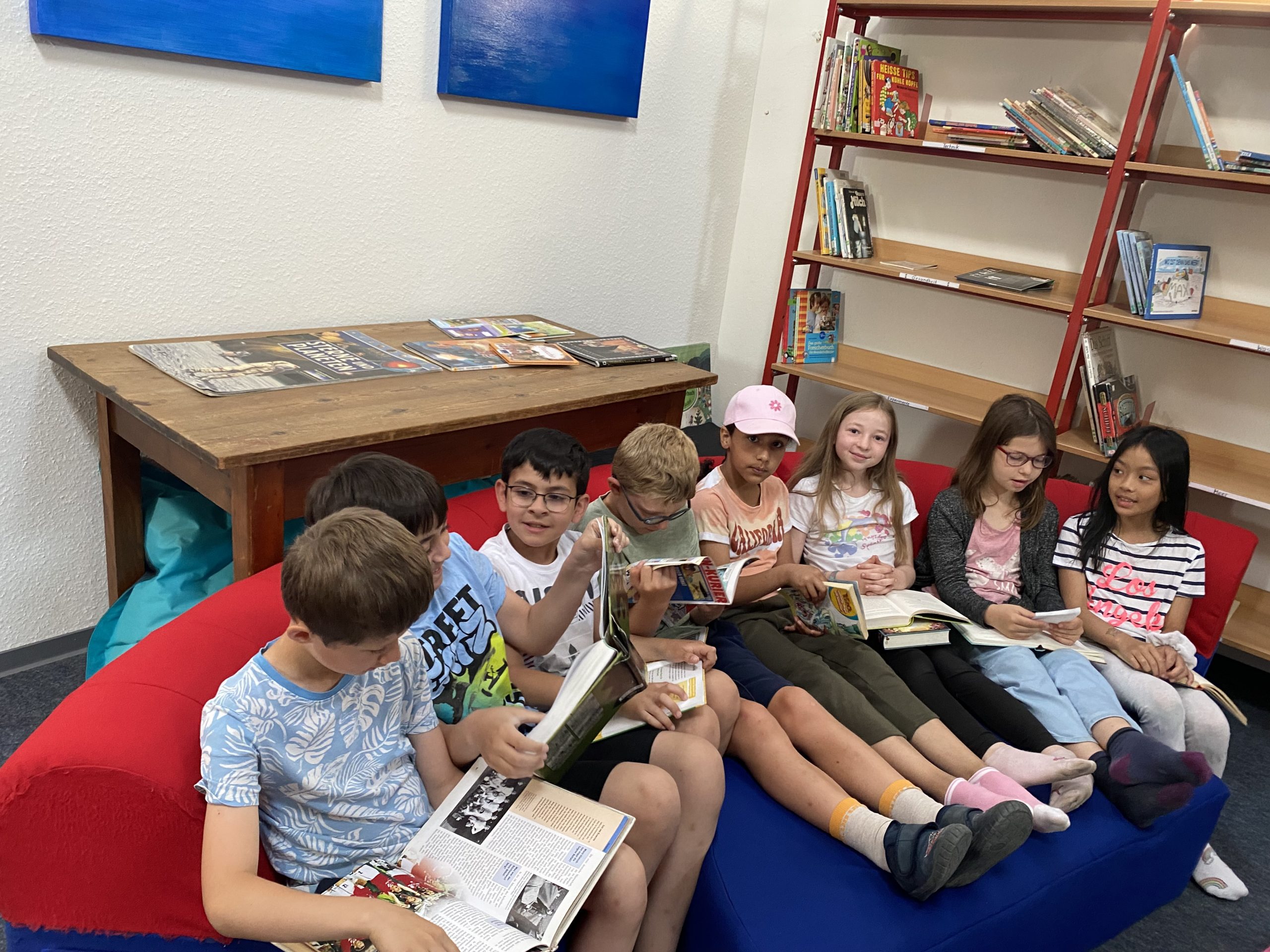 Außerdem besucht die 3b einmal wöchentlich unsere Schulbücherei – den „Bücherhimmel“. Beim Stöbern in den vielen verschiedenen Büchern kann man schnell die Zeit vergessen…..