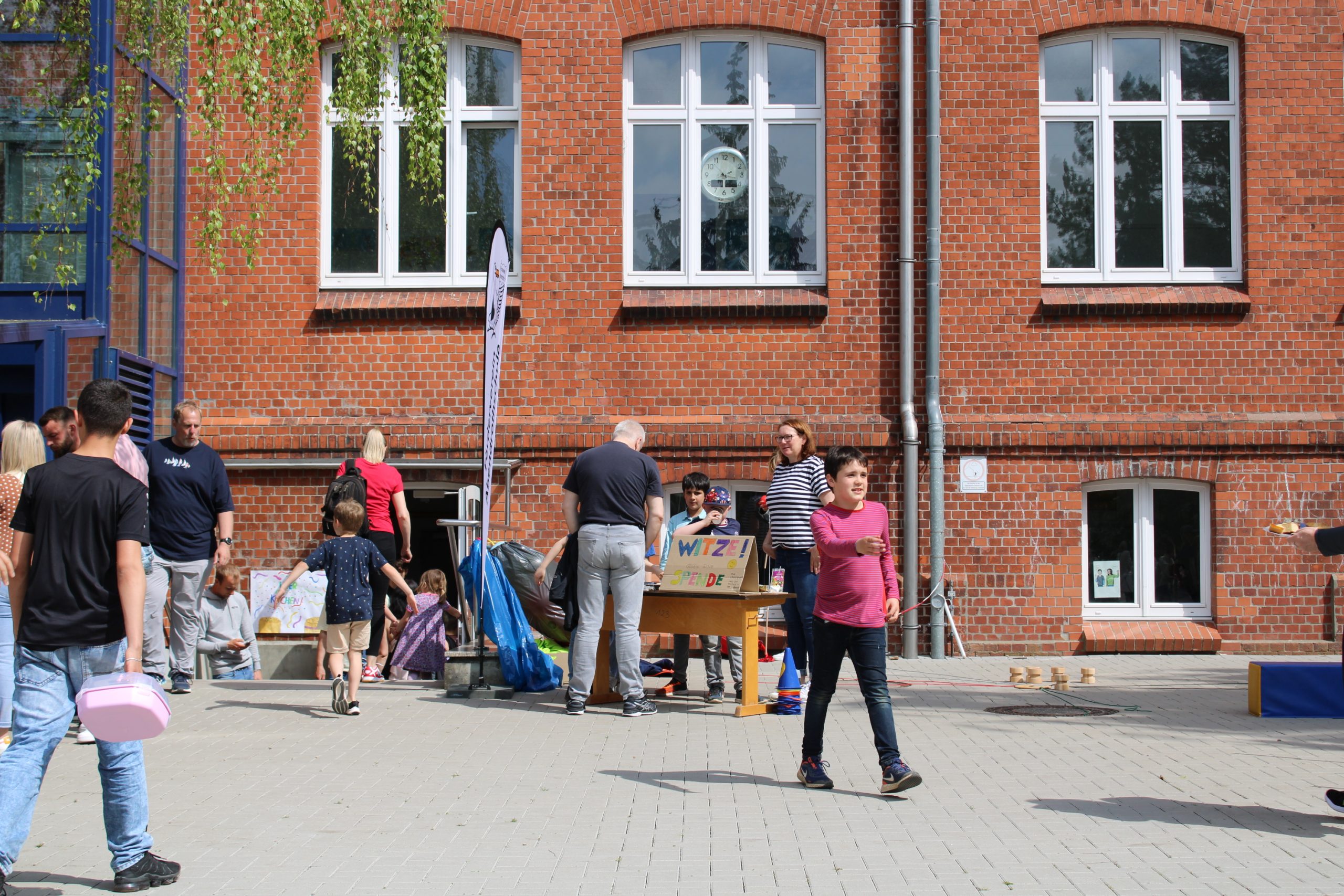 Die Kinder zeigten den Besuchern, was sie an den Projekttagen erarbeitet haben. So gab es beispielsweise einen Museumsrundgang zu den Cuxhavener Sehenswürdigkeiten, die Disco „Jan Cuxens Tanzpalast“, einen Barfußpfad und einen Kettcar-Parcours zu bewundern. Das Programm des Schulfestes wurde außerdem durch viele Programmpunkte der Eltern, wie z.B. eine Schatzsuche, Tattoostation, Riesenseifenblasen sowie ein Kuchenbuffet, ergänzt. Wir möchten uns an dieser Stelle bei allen Beteiligten für die Organisation und das gute Gelingen des Schulfestes ganz herzlich bedanken.