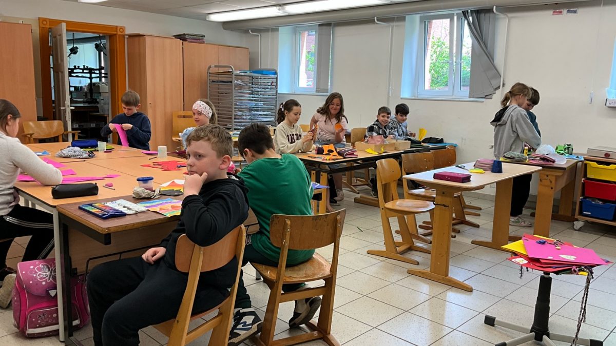 In unserem aktuellen Projekt dürfen wir uns mit der Dekoration für das Schulfest beschäftigen. Eine riesige Willkommens-Girlande soll dieses Jahr die Schulbühne zieren. Für unsere Kunst-AG kein Problem!